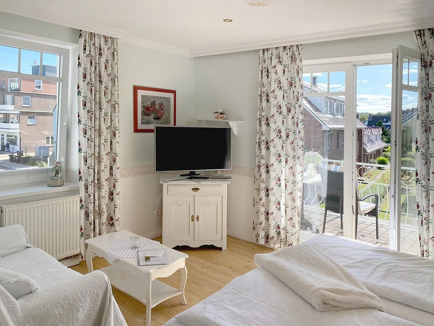 Dieses liebevoll eingerichtete 1-Raum-Apartment befindet sich in der 1. Etage - ohne Fahrstuhl - in direkter Strandlage – unmittelbar an der Promenade.