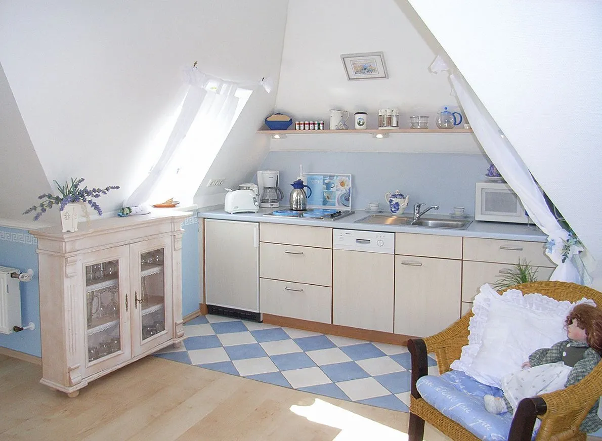 Die neue Landhausküchenzeile ist sehr gut ausgestattet: Geschirrspüler, Kühlschrank, Mikrowelle, Herd Ceranfeld und Backofen machen das Kochen auch im Urlaub zum Vergnügen.