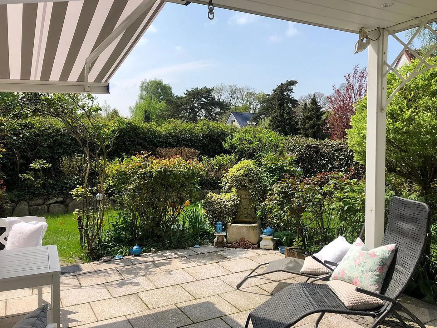 Die sonnige Südlage, ein abgeschlossener Garten, zwei Balkone und eine große Sonnenterrasse mit Markise machen dieses Haus zu einem echten Urlaubsparadies.