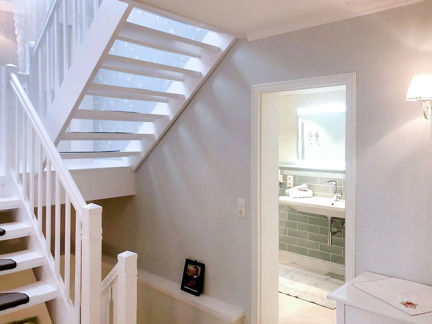 Ein weiteres modernes Duschbad mit WC sowie ein Flur runden den Bereich ab.