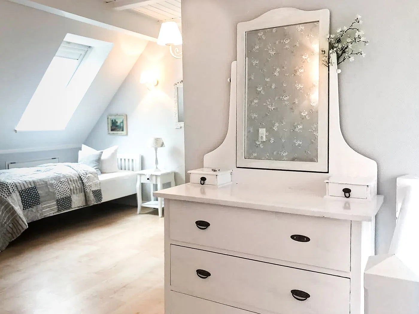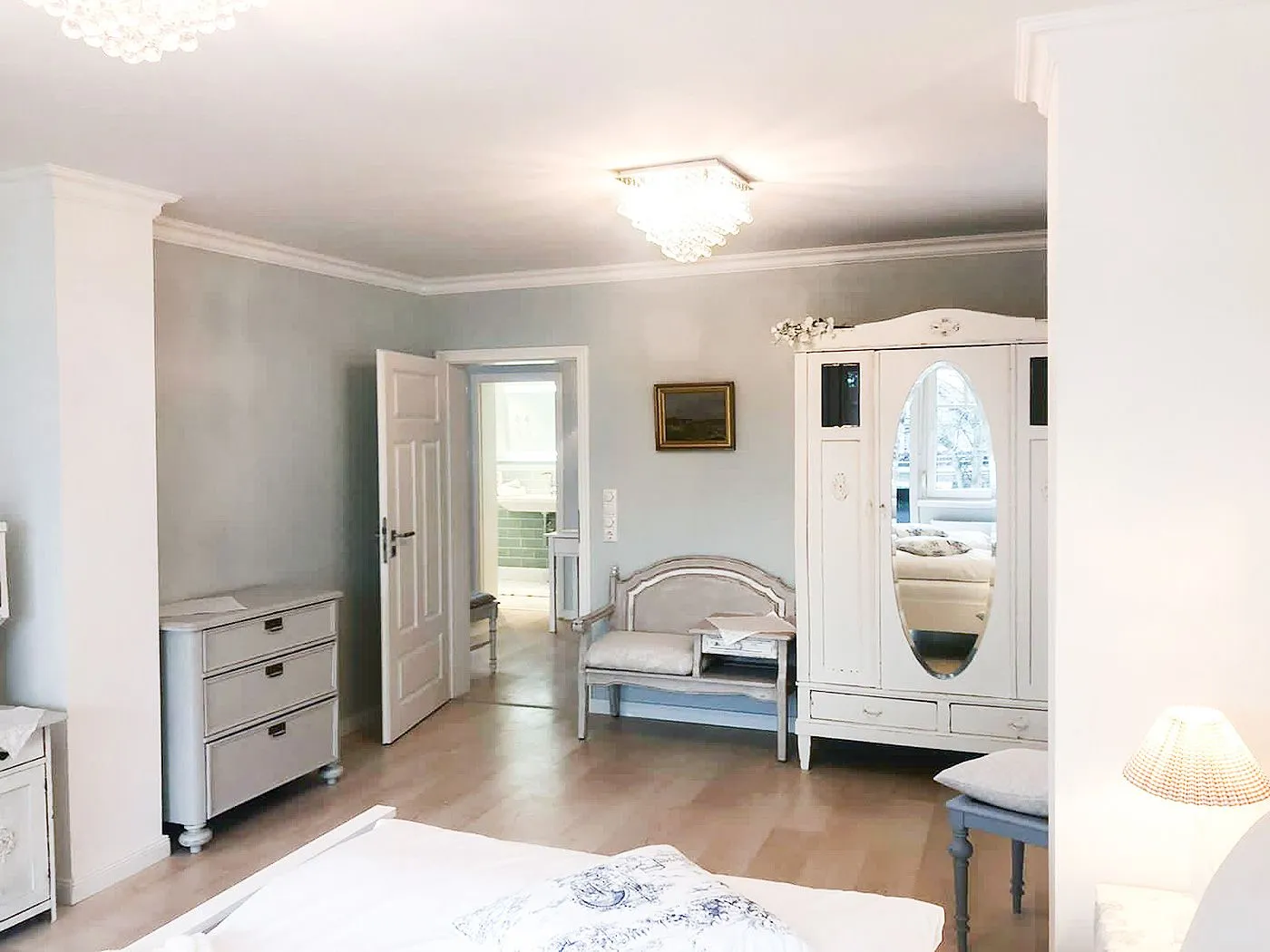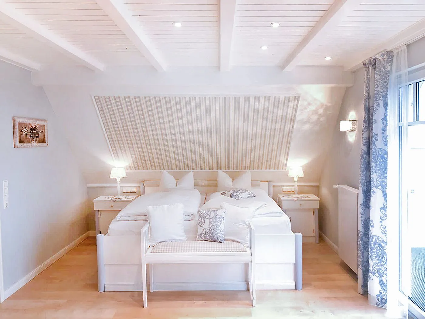 Das Highlight der oberen Etage ist das große Schlafzimmer mit Doppelbett, eigenem Balkon und Kabel-TV.