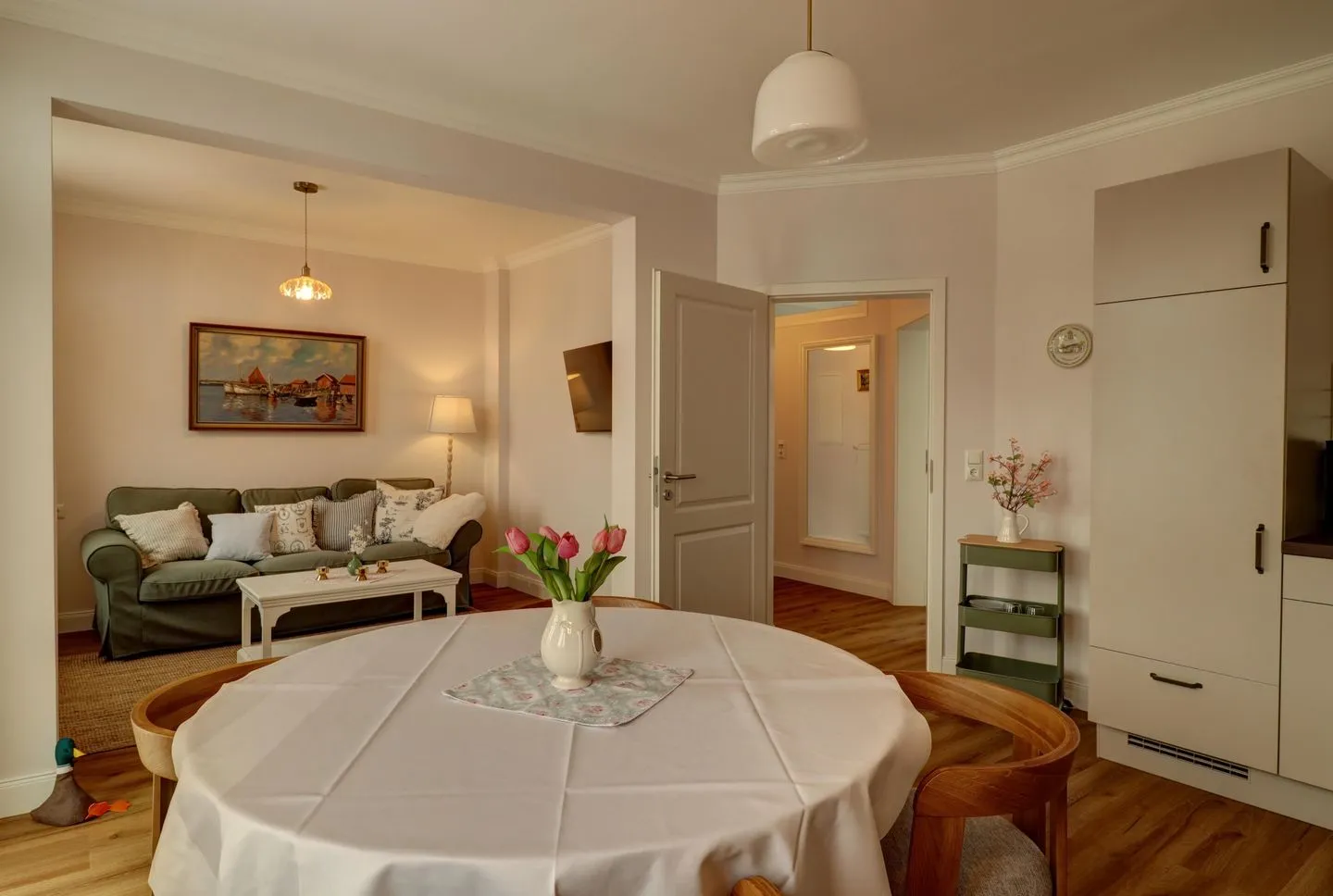 Genießen Sie weiten Blick über den romantischen Niendorfer Hafen – dicht vom feinsandigen Ostseestrand entfernt. Das Appartement 3 in der Villa Johanna liegt im 1. Obergeschoss und bietet Ihnen maritimes Flair bereits beim Aufstehen: Über den Dächern Niendorfs schweift Ihr Blick bis zum Hafen.